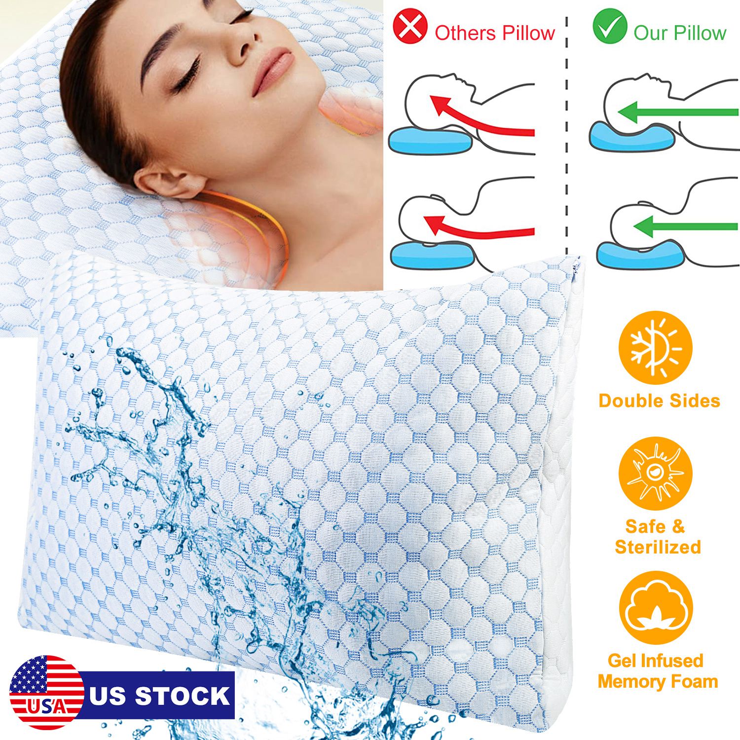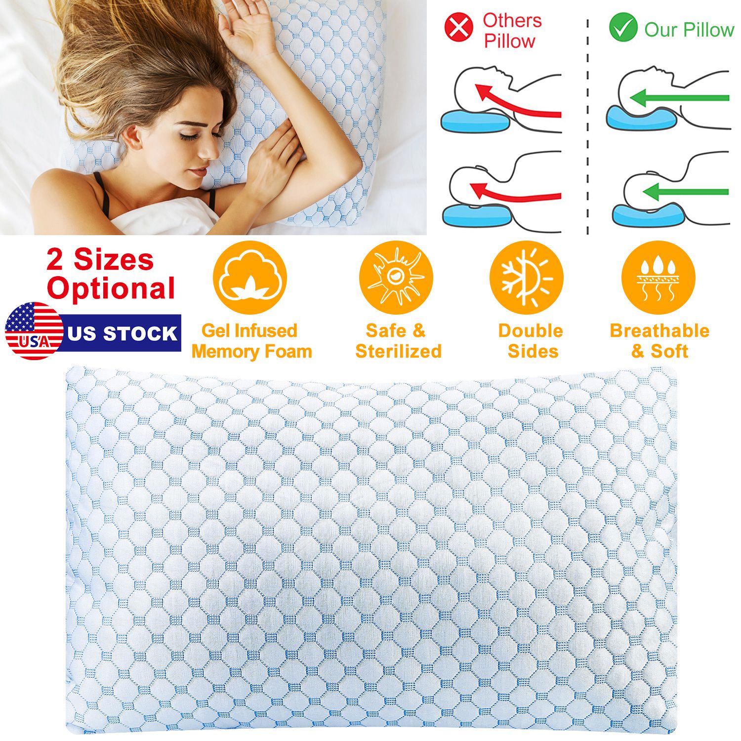 Filled with gel infused blue memory foam, made of cooling fiber, one side of our bed pillow always stay cooling between your body and the pillow, giving you a unique cooling sensation all night regardless of the room temperature it’s in. Other side made of bamboo fiber is super soft and comfortable. The hidden zipper allows you to customize the thickness and density to fit your need perfectly, helping alleviate your sleep and get enough rest during the night.