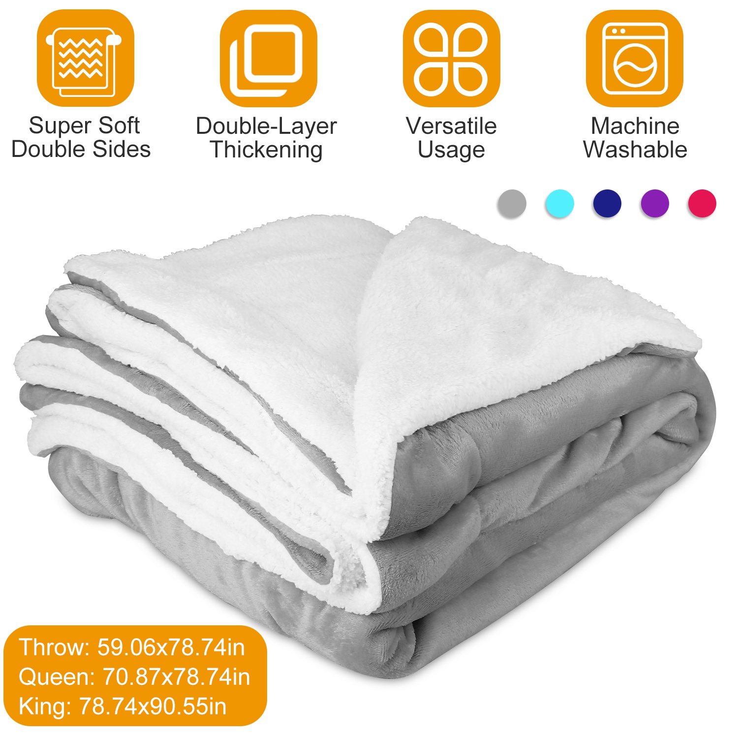 Want to enjoy your TV series with hot chocolate on couch in chill night with warmth and comfort? Our Fleece Blanket with double super soft sides can offer you different senses of softness and super warmth at chill weather, suitable for bedroom, guest room, etc.. Besides, 5 colors and 3 sizes are provided for you to fit your needs. Made of premium microfiber polyester, it is no fabric shedding, no color fading, no pilling.