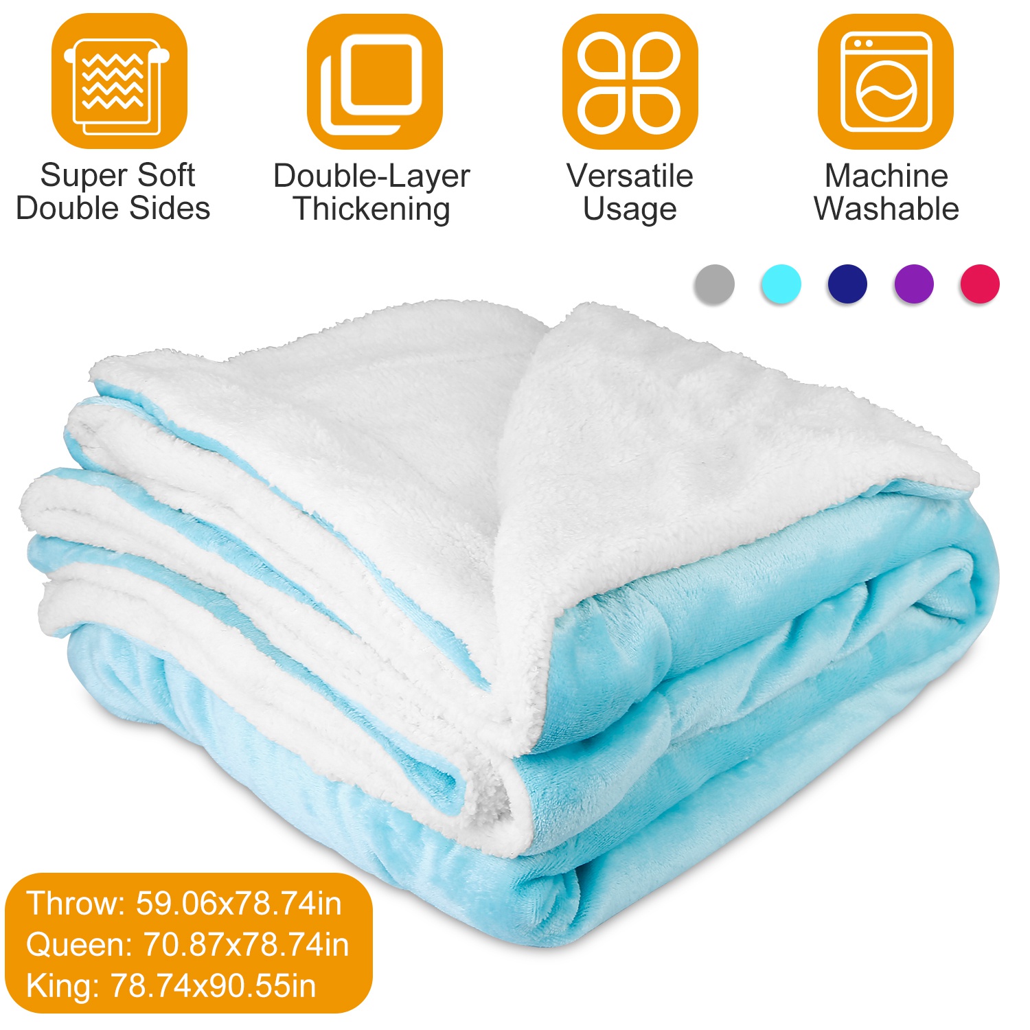 Want to enjoy your TV series with hot chocolate on couch in chill night with warmth and comfort? Our Fleece Blanket with double super soft sides can offer you different senses of softness and super warmth at chill weather, suitable for bedroom, guest room, etc.. Besides, 5 colors and 3 sizes are provided for you to fit your needs. Made of premium microfiber polyester, it is no fabric shedding, no color fading, no pilling.