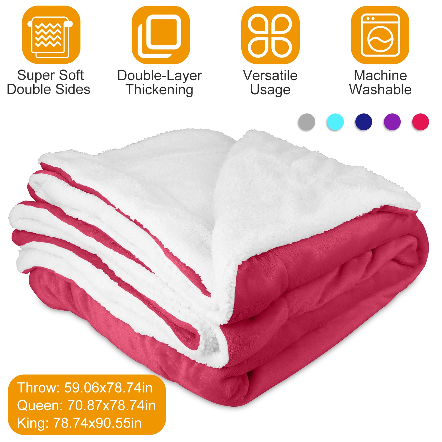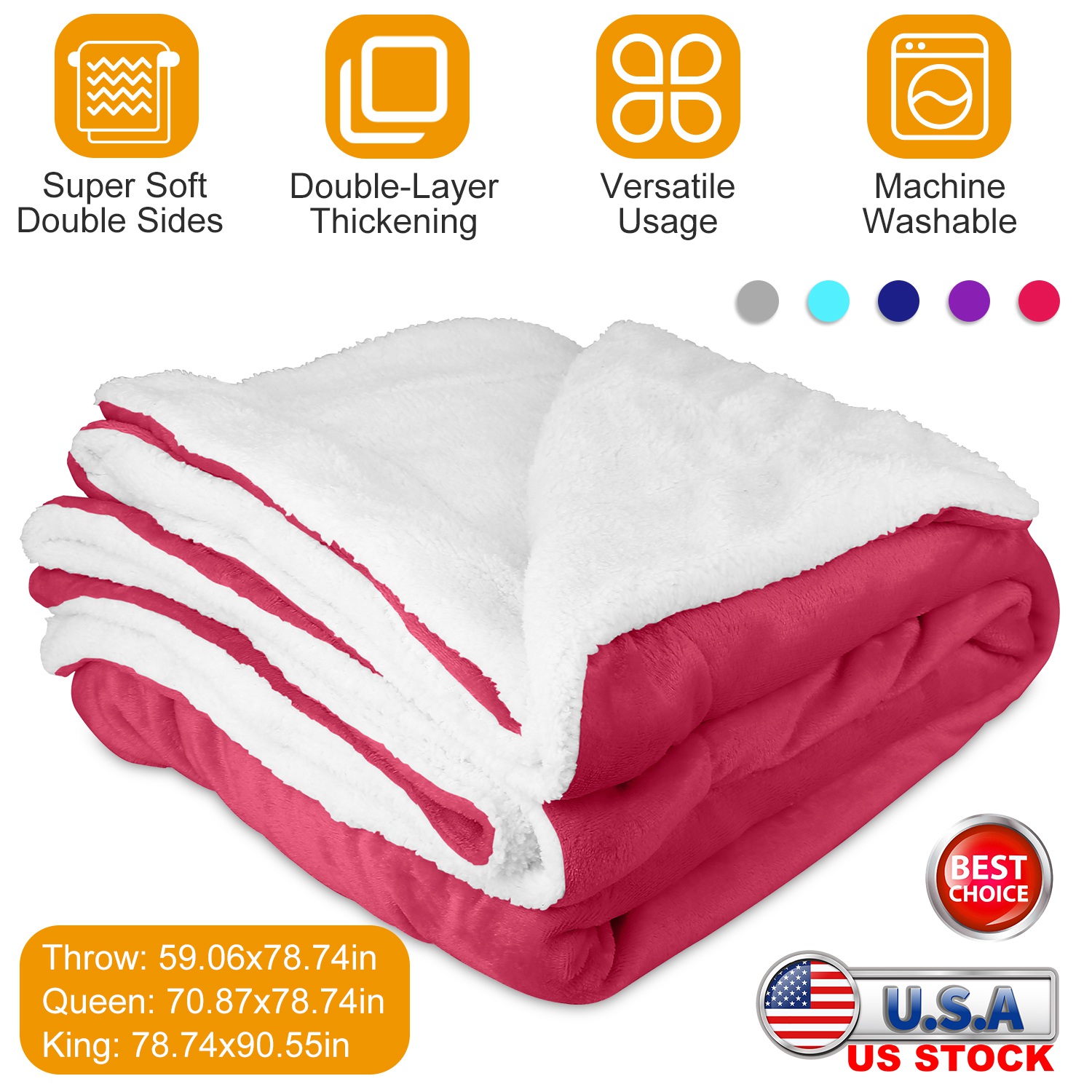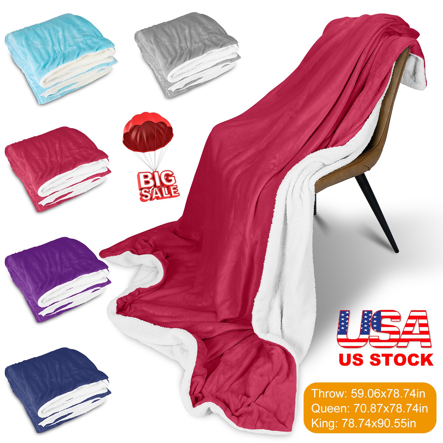 Fleece Throw Blanket Warm Soft Flannel Bed Cover Cuddly Cozy Sofa Travel Car Blanket w/ Queen King Throw Size Optional
