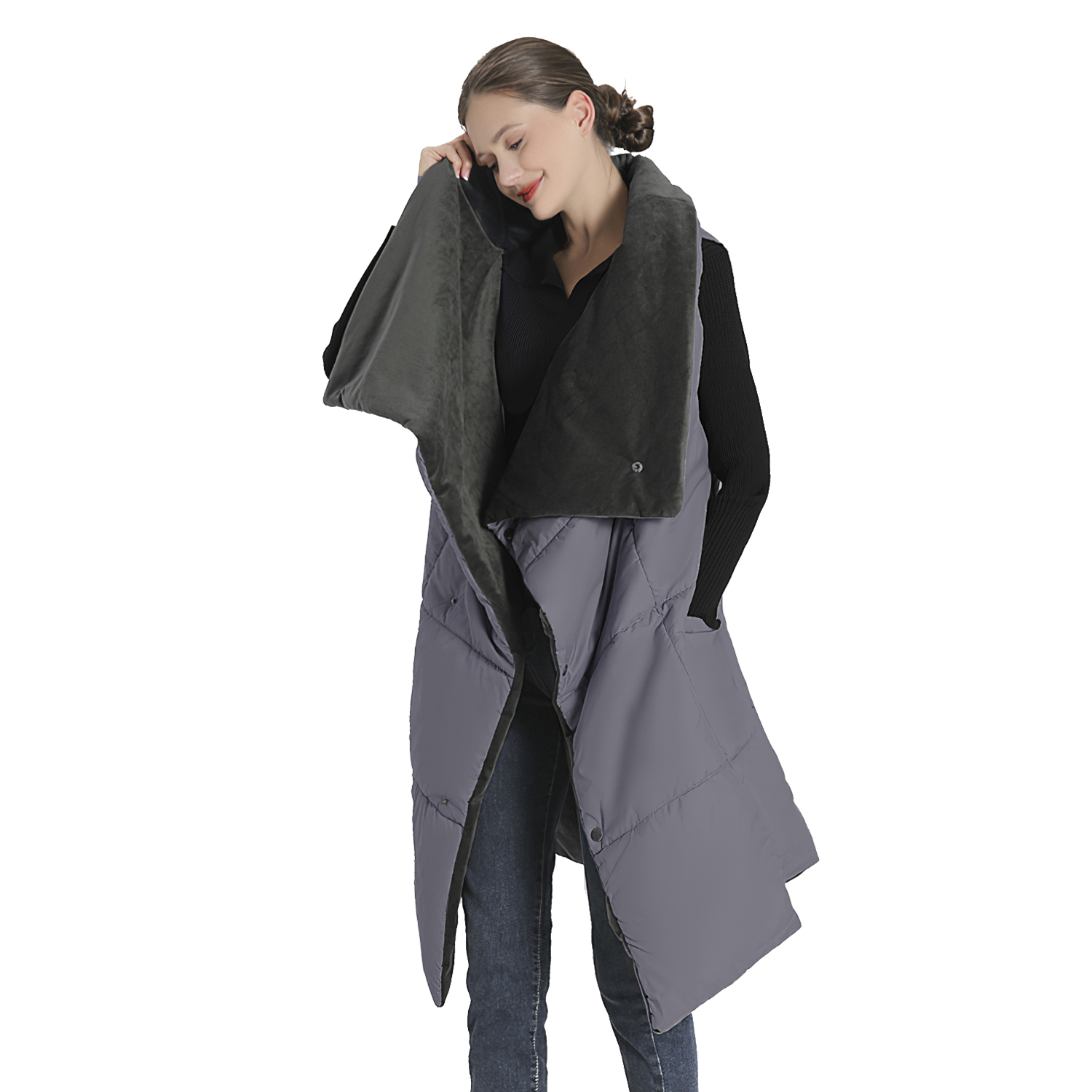 Stay toasty wherever you venture with this portable USB heated blanket. This USB powered heated blanket with 6 heating zones offers three heat settings, including low, medium, and high and the power bank (not included) can be easily tucked in the pocket sewn inside the blanket. The zipper arm holes design allows you to wear it as a shawl for outdoor activities or as a blanket while relaxing at home. Made of super soft polyester lining with short plush, the heated blanket is super soft, cozy, skin-friendly, and comfortable to wear. Also designed with 2 pockets to keep your hands warm or store your small items. An ideal gift for your families and friends to care for their health in cold winter. M/L Sizes are optional.
