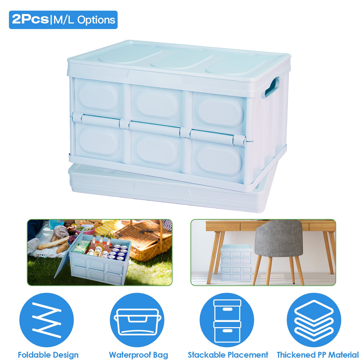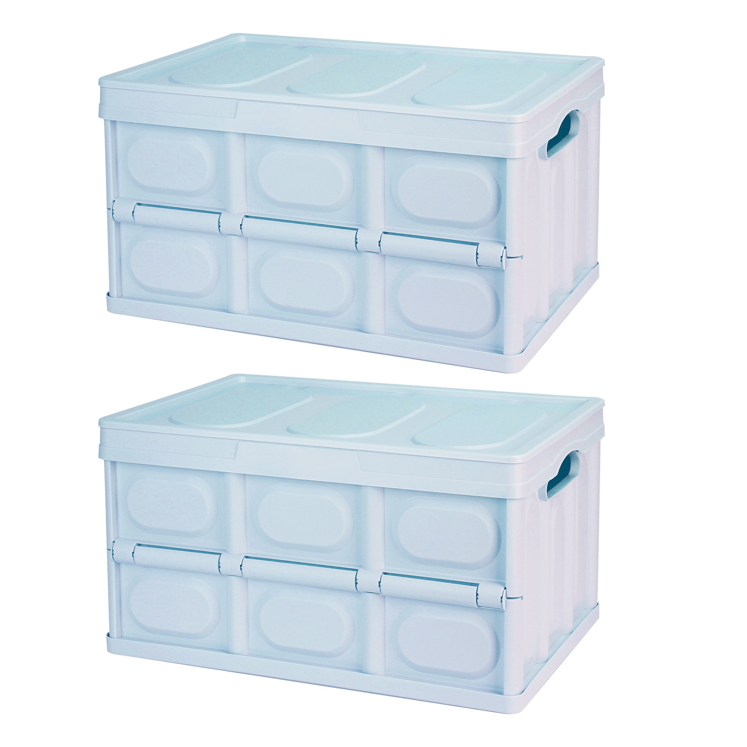 Home > 2Pcs 56L Collapsible Storage Bins With Dustproof Lid Waterproof Interior Bag Handle Stackable Storage Box Container Utility Organizer Crate For Campin