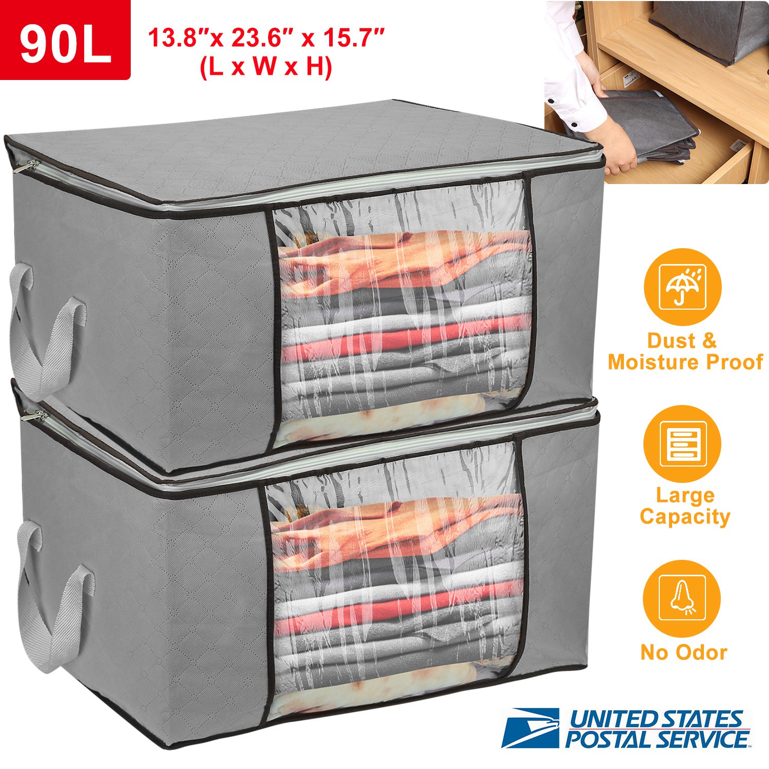 Home > 2Pcs Clothes Storage Bag 90L Large Capacity Foldable Closet Organizer w/ Thick Fabric Clear Window Dual-Zipper for Clothes Comforters Blankets Bedding