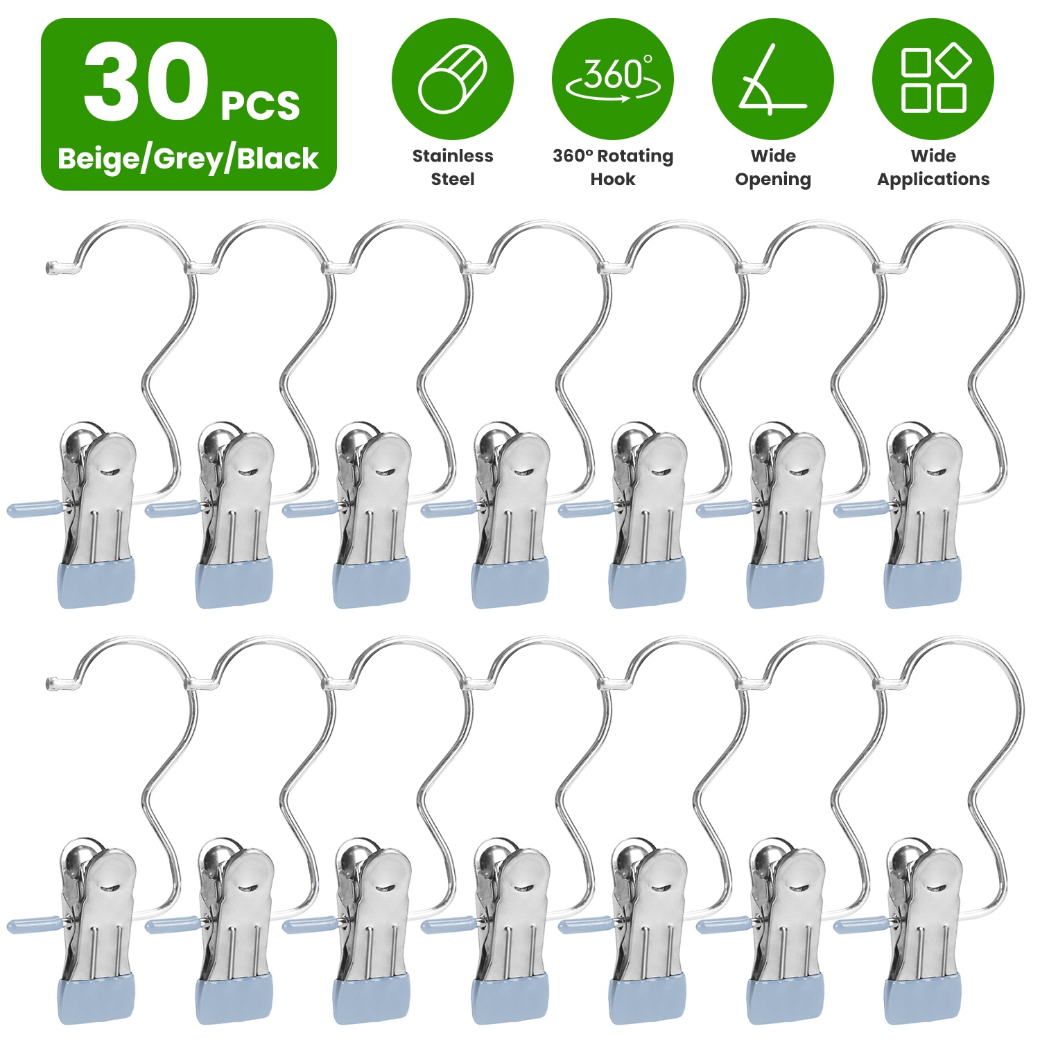 30 Pack Hanging Clips for Closet Multifunctional Clothes Pins Heavy Duty Space-saving Laundry Hooks for Boots Jeans Hats Towels Socks Pants Handbags T