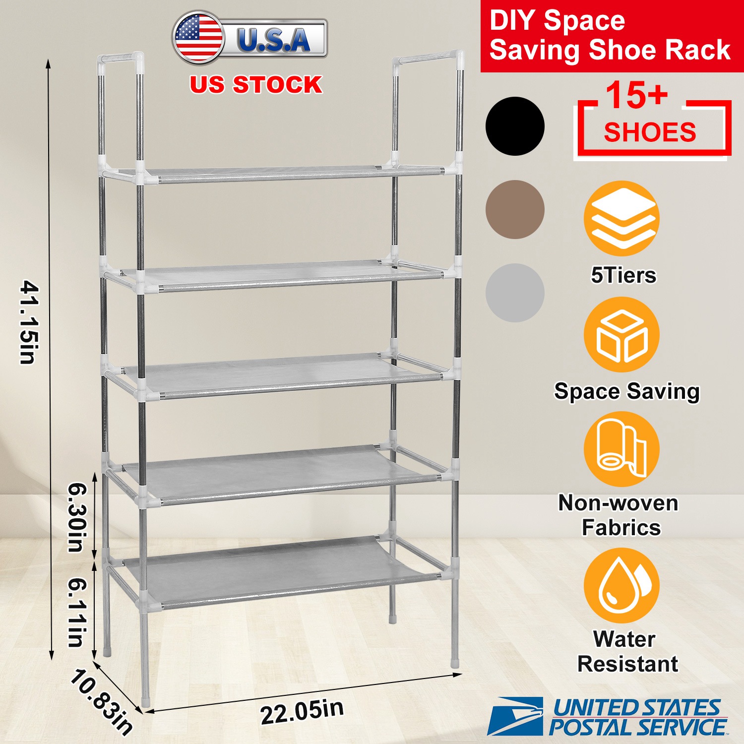 Our shoe rack adopts non-woven fabric and stainless iron galvanized pipe, stubborn and well- constructed. Its design enables our shoes to display in a tidy and cleaning style, multi-parts will be assembled quickly and fastly.5 Tiers with 6.62lbs per cell to hold at least 15pairs of shoes. Interlayer cell can be removed and to store larger items, such as handbags, toys and boxes, etc.. A good helper for housewife.
