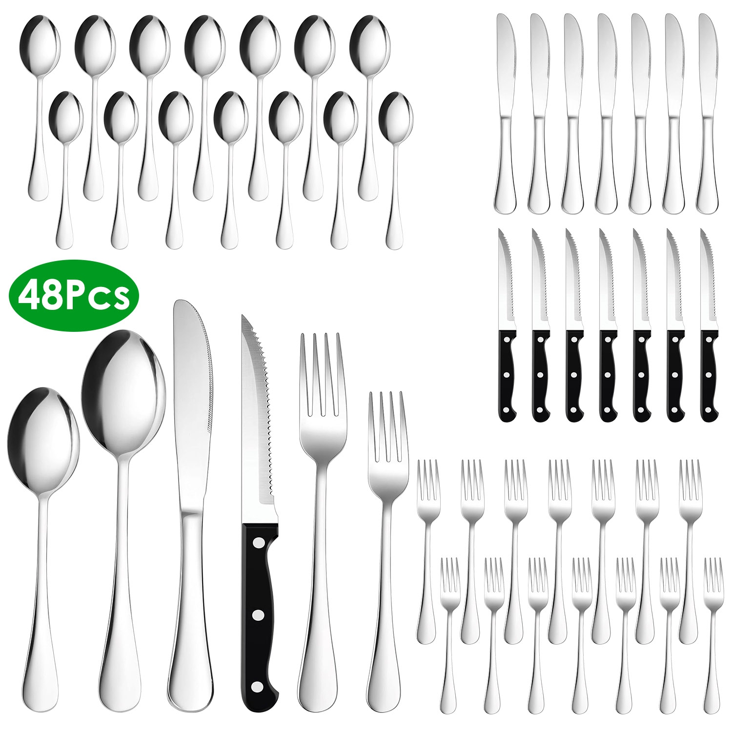 Home > 48-Piece Silverware Set Stainless Steel Flatware Cutlery Set Tableware Eating Utensils for 8 with Knife Fork Spoon Dishwasher Safe for Home Kitchen Re