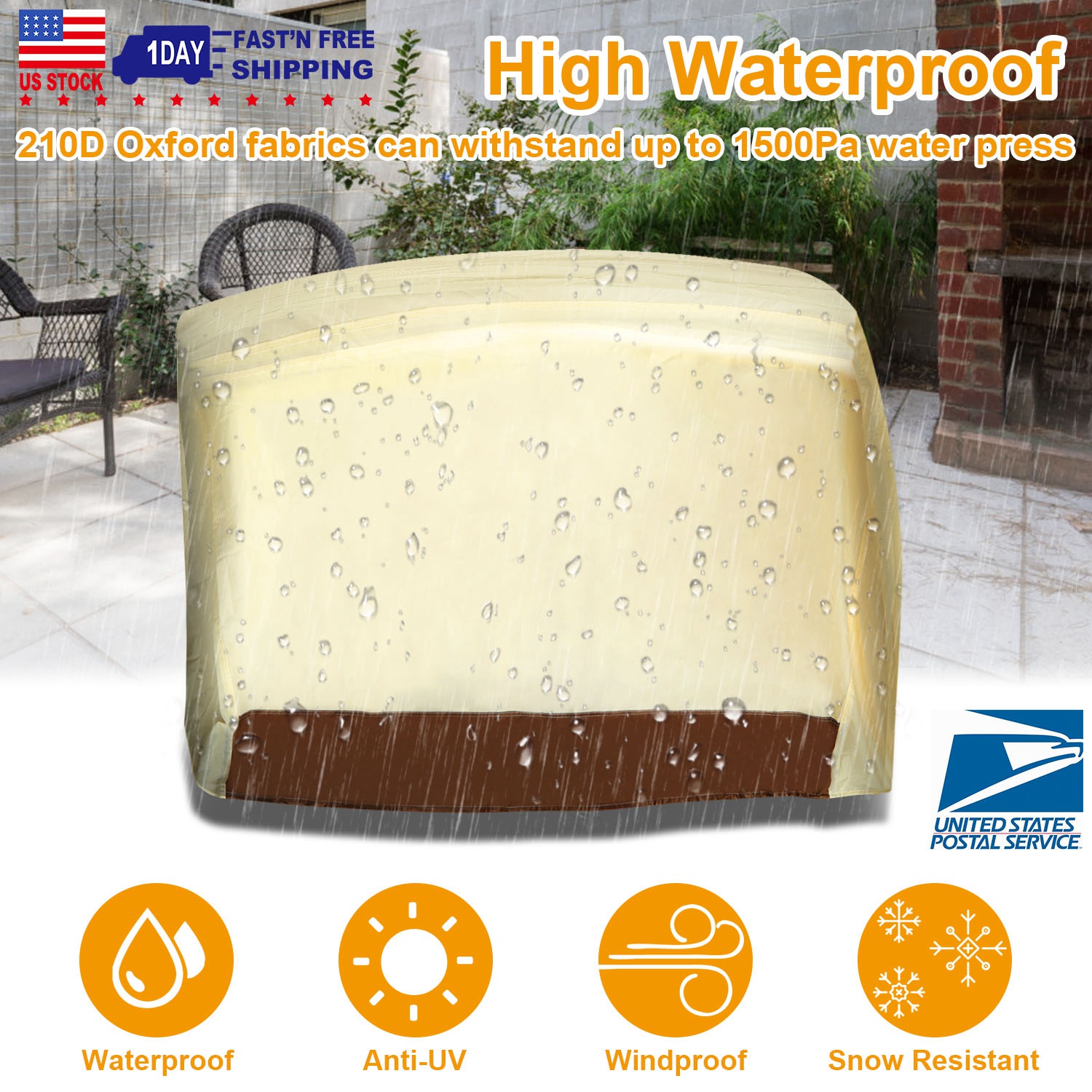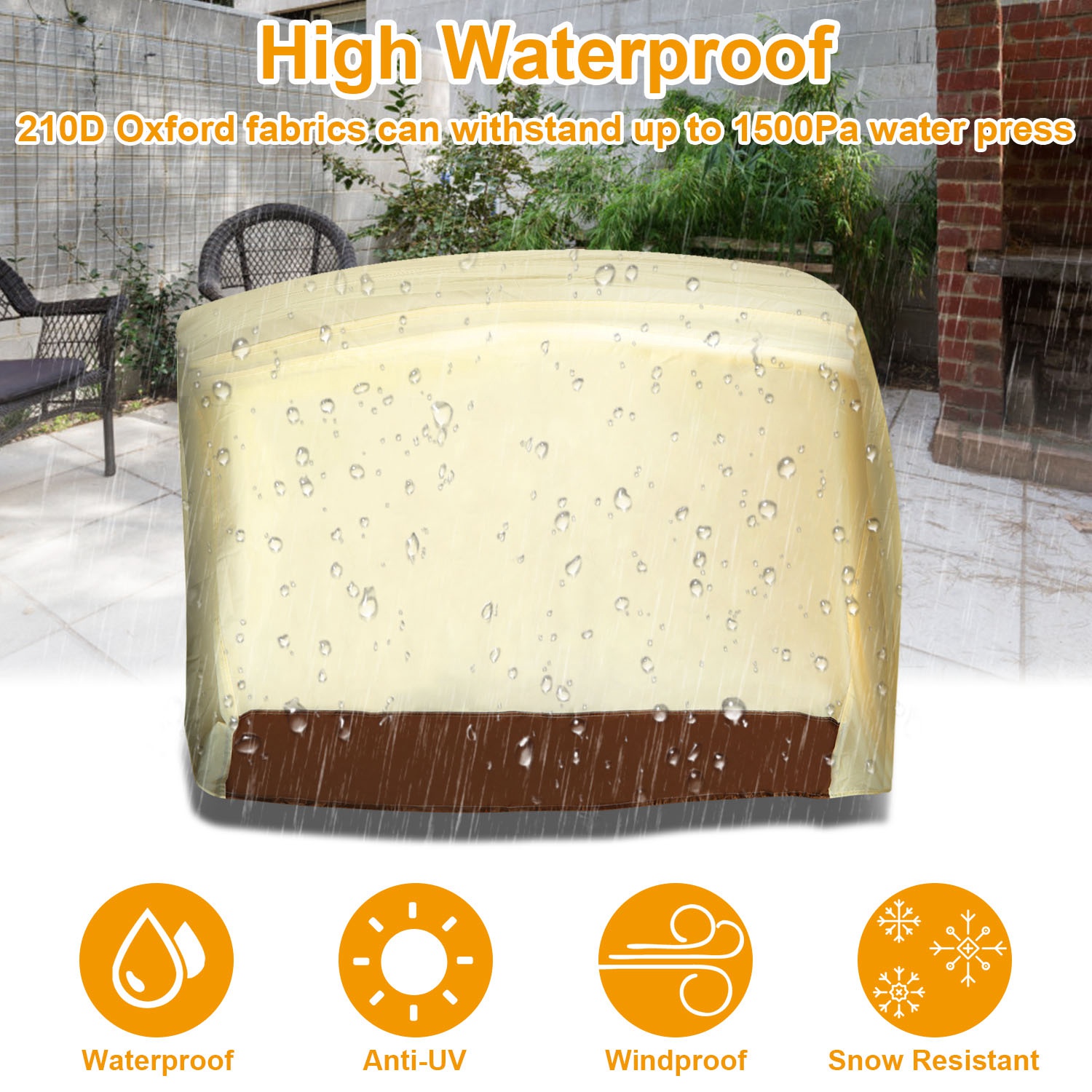 Our outdoor furniture cover adopts 210D Oxford Cloth and PU coated with silver inside, prevents 80% UV rays of sunlight, breathable and waterproof, protect our outdoor BBQ grill from color fading and aging. Featured with additional Nano material and fine stitching workmanship, outdoor furniture cover has strong intensity and durability. Widely used in outdoor garden BBQ grills and furniture.