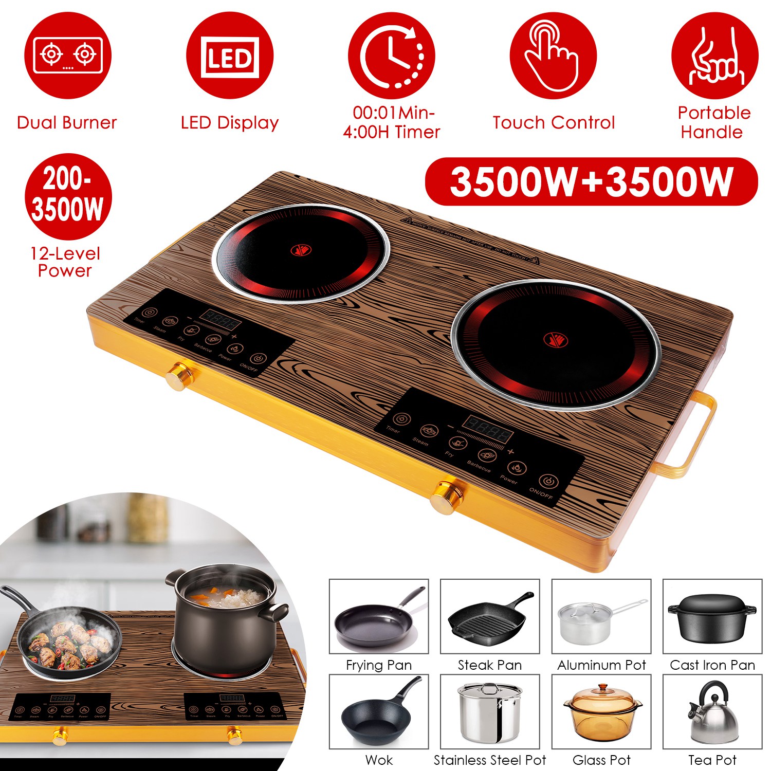 7000W Electric Double Ceramic Stove Electric Cooktop Hot Plate Infrared Countertop Burner 3500W+3500W with 11 Power Levels 0-4H Timer Portable Handle