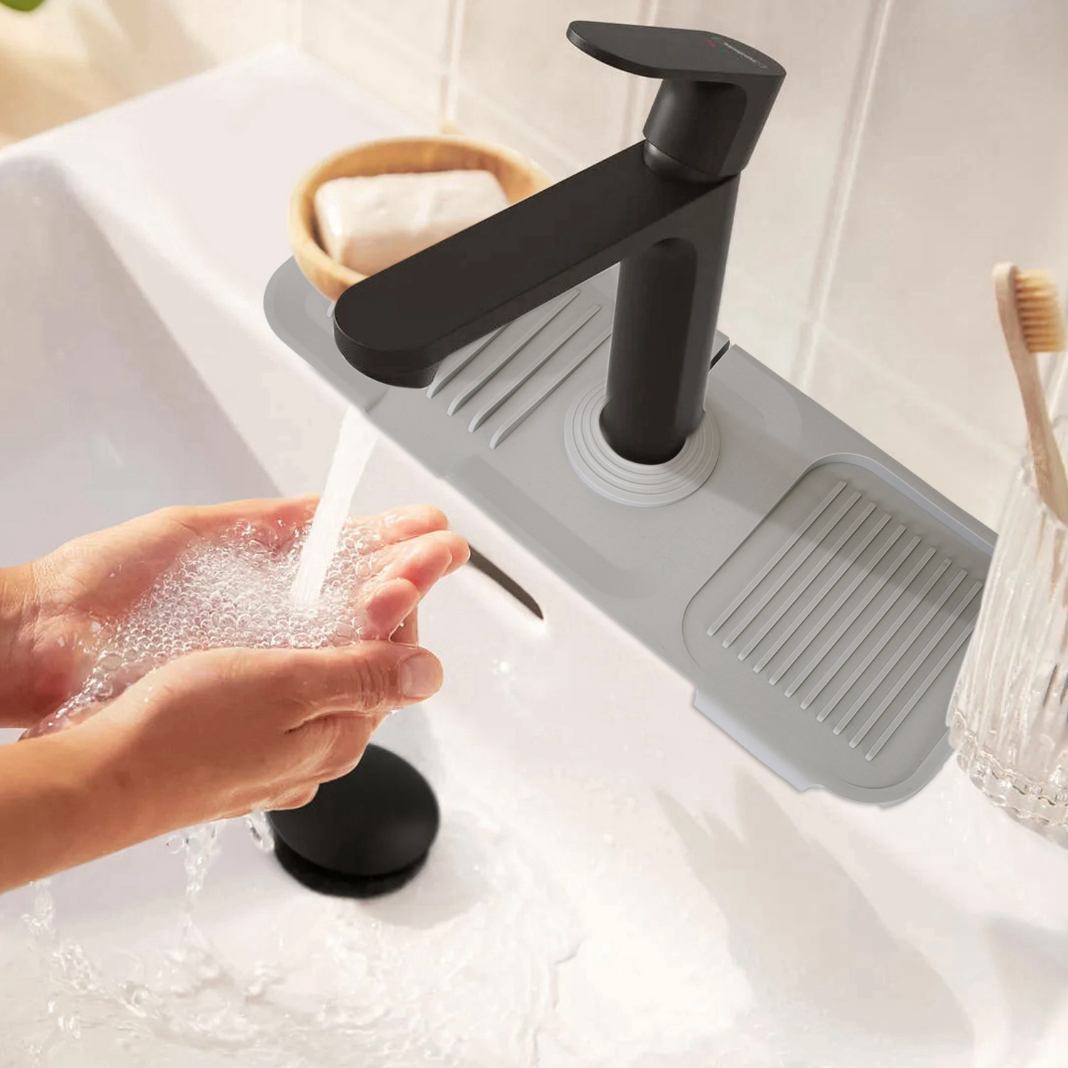 Home > Faucet Splash Mat 14.56x5.51in Silicone Sink Drying Mat Water Drip Catching Tray Water Drainage Pad Sponge Soap Holder for Kitchen Bathroom Sink Fauce