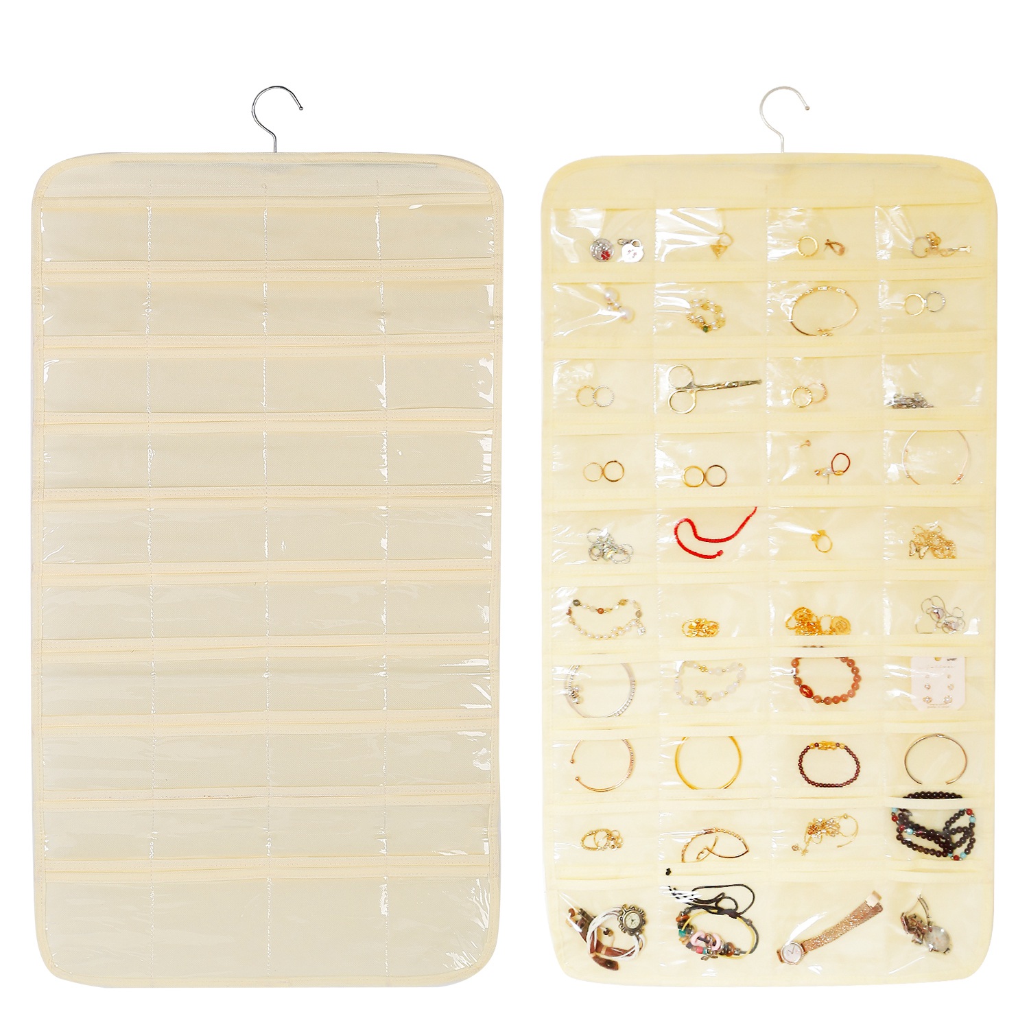 Home > 2Pcs Hanging Jewelry Organizer Earring Necklace Bracelet Holder Double-sided 80 Pockets Accessory Storage Pocket