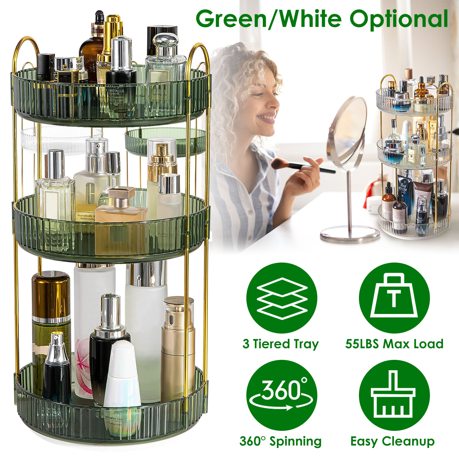 Home > 3 Tier Rotating Makeup Organizer 360° Spinning Perfume Cosmetic Storage Tray 55LBS Load Countertop Shelves for Lotion Lipstick
