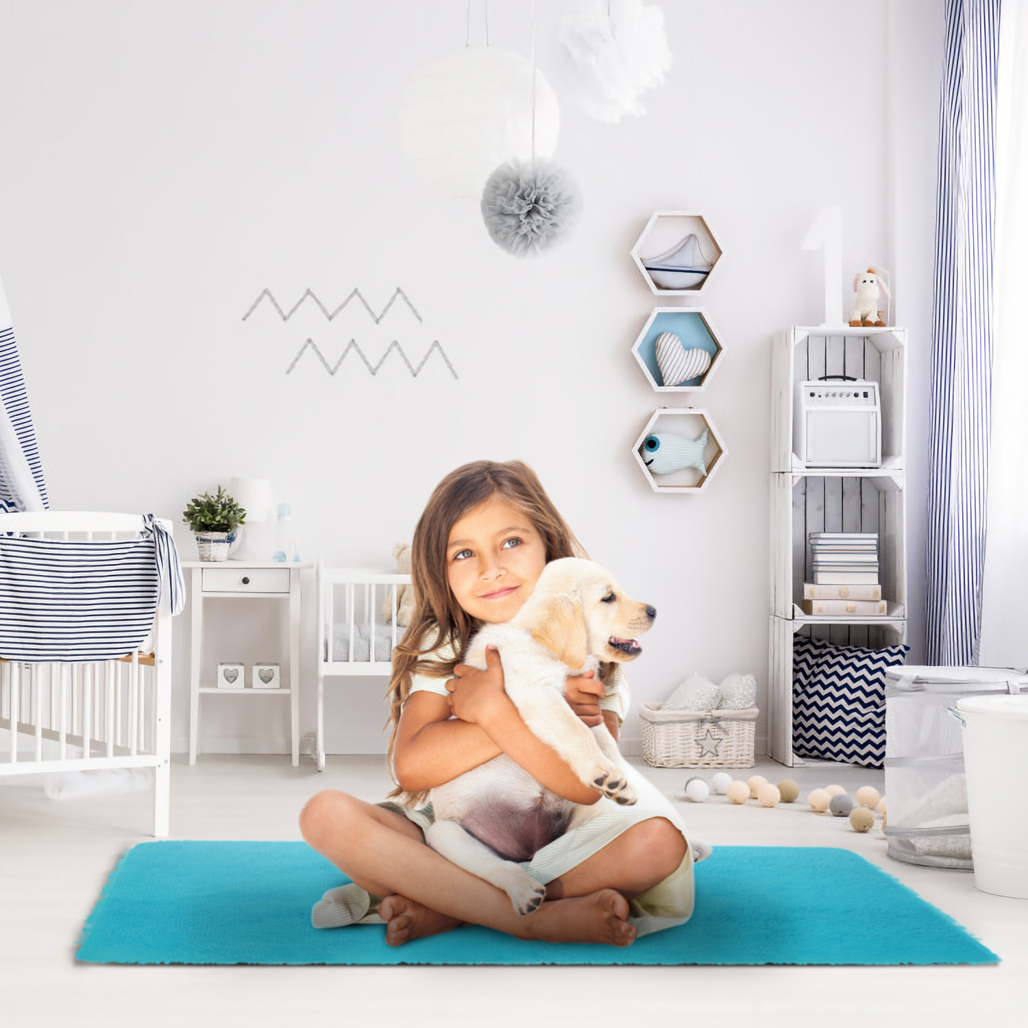 Our fluffy area rug is made out of 100% quality polyester fabric with shaggy fluff surface giving a soft feeling. Its color will not fade, and simply style adds a touch of elegance to your room. Designed with small anti-slip grip dots at the bottom of the fluffy area rug are to help prevent from sliding on floor; Sponge in the middle of the carpet soothes your tired feet; 10 beautiful colors for option to make the space seem vibrant and welcoming. Your kids and pets can play very happily and comfortably on the area rug.