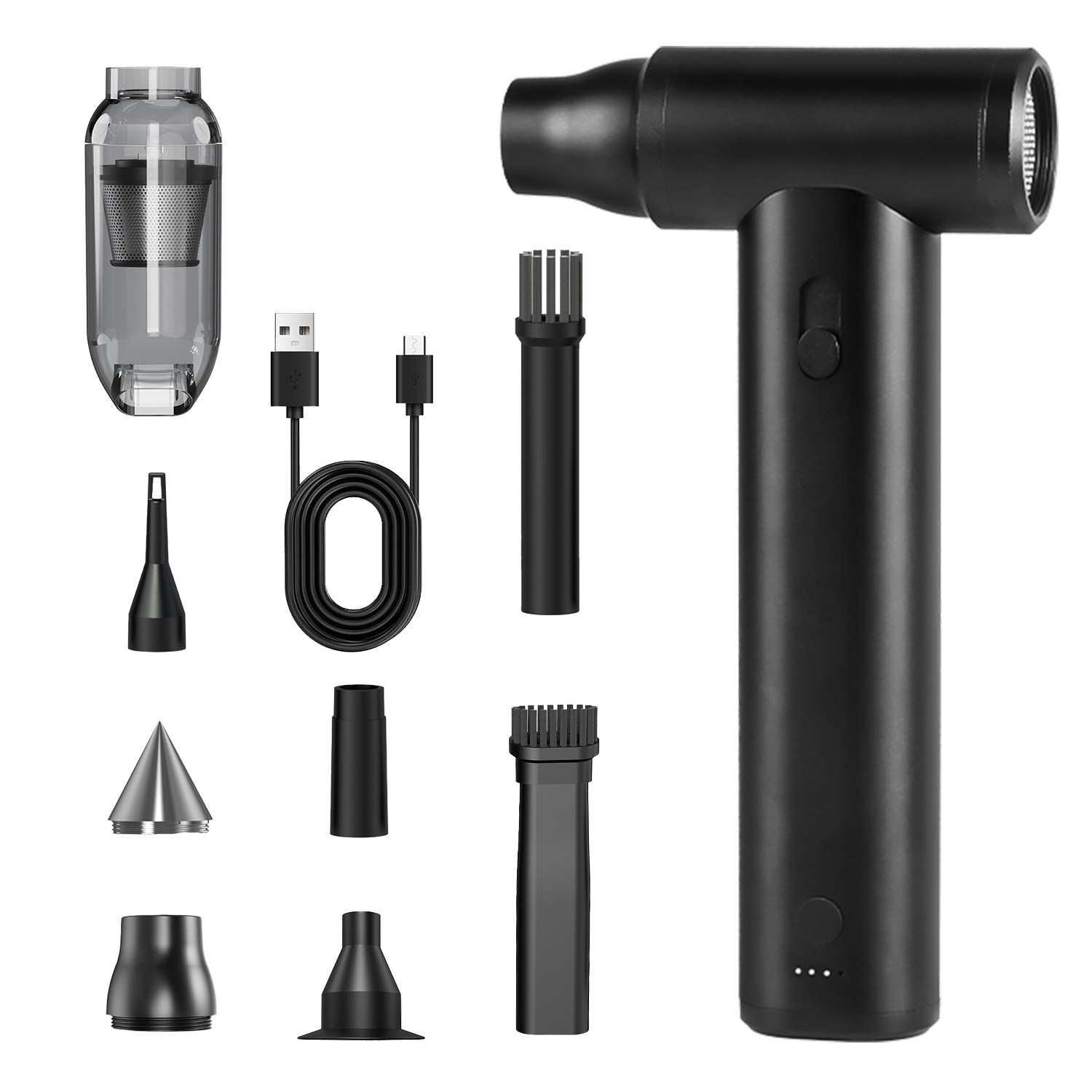 Equipped with powerful brushless motor, our innovative compressed air duster with 19Pcs accessories is designed for all your cleaning demands. The front end delivers strong airflow for blowing away dust and debris, while the rear end is for vacuum cleaning and extraction purposes. Reaching up to a maximum rotate speed of 250,000 RPM, high-speed airflow generated by this cordless dust blower thoroughly and deeply removes debris from even the tightest crevices. Suitable for cleaning keyboard, laptop, camera, car seat, blind cleaning as well as inflating airbeds, lifeboats, pool floats or starting fires at picnics.