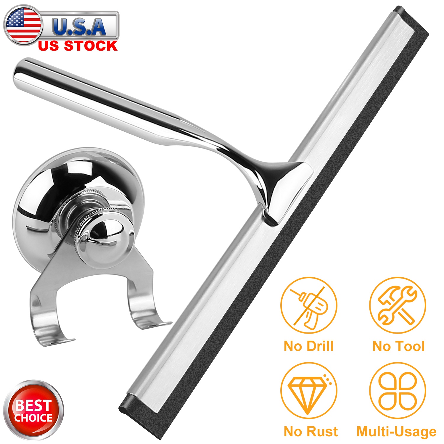 10.24in Shower Squeegee Cleaner All-Purpose Stainless Steel Glass Car Window Wiper w/ Suction Cup Hook For Shower Doors Bathroom Mirror