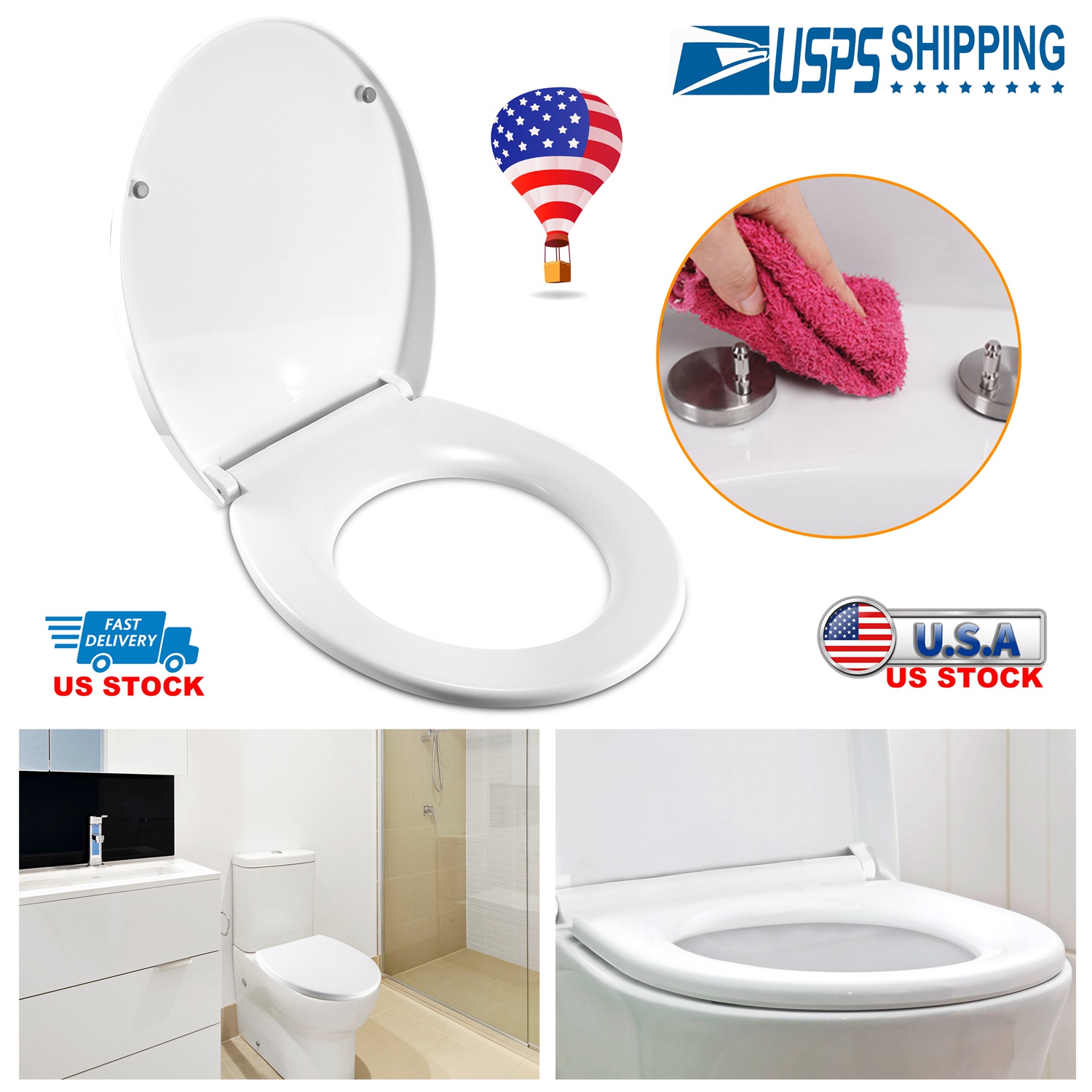 Oval Shaped Toilet Seat with Grip-Tight Seat Bumpers Heavy-Duty Quiet-Close Quick-Release Easy Cleaning White UK