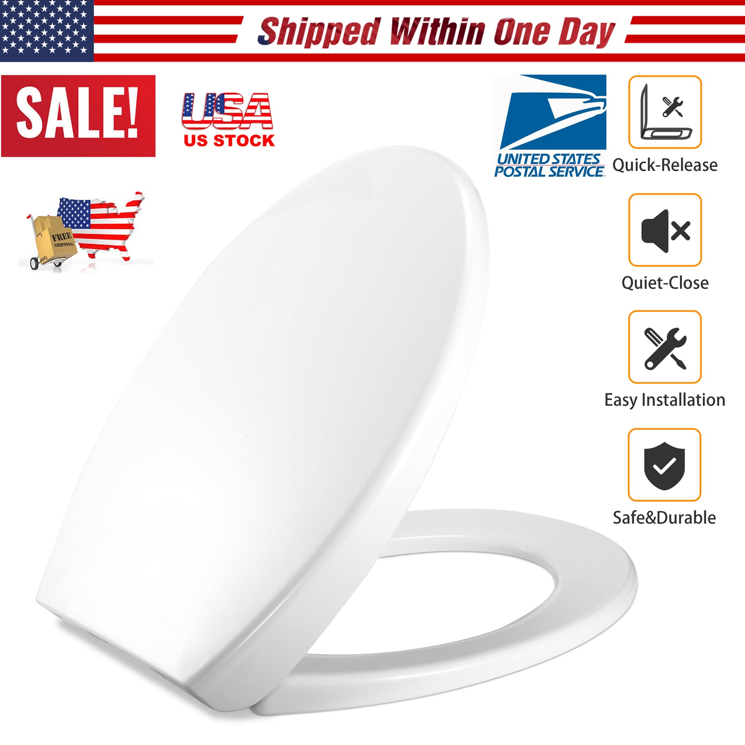 Our oval-shaped toilet seat (7.72in-L x 14.97in-W x 1.77in-H) is made from premium urea-formaldehyde materials, high hardness, strong toughness, scratch-resistant, abrasion-resistant and no fade. Adopting slow-close design, it can be closed slowly to avoid loud slam, cracked toilets and pinched fingers. Additionally, it can be installed easily and securely with a set of quick-attach mounting accessories and removed instantly for a thorough cleaning with its designed quick-release buttons.