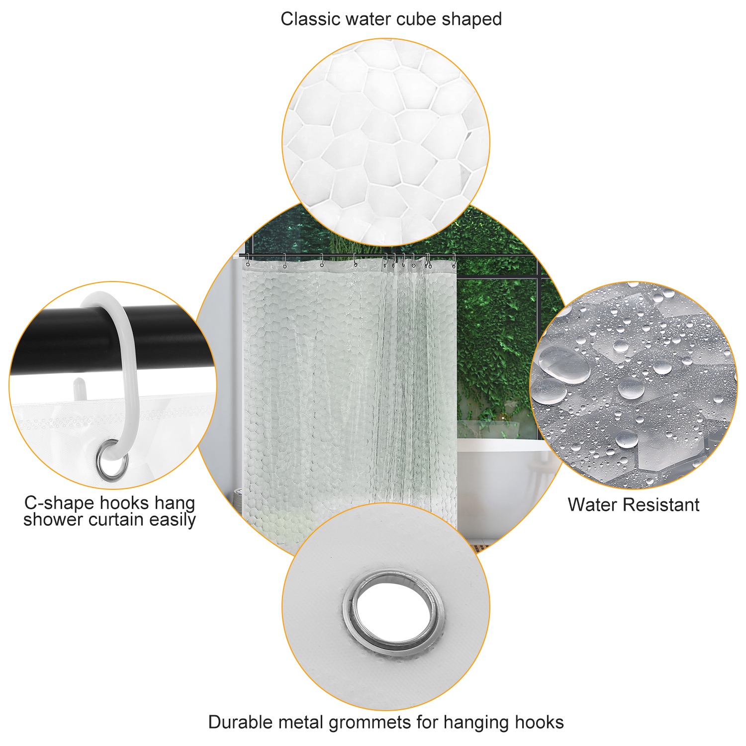 Shower Curtain Waterproof 70x70 Inches Bathroom Shower Curtain Liner EVA Bathroom Curtain w 12 Hooks for Bathtub Shower Stall