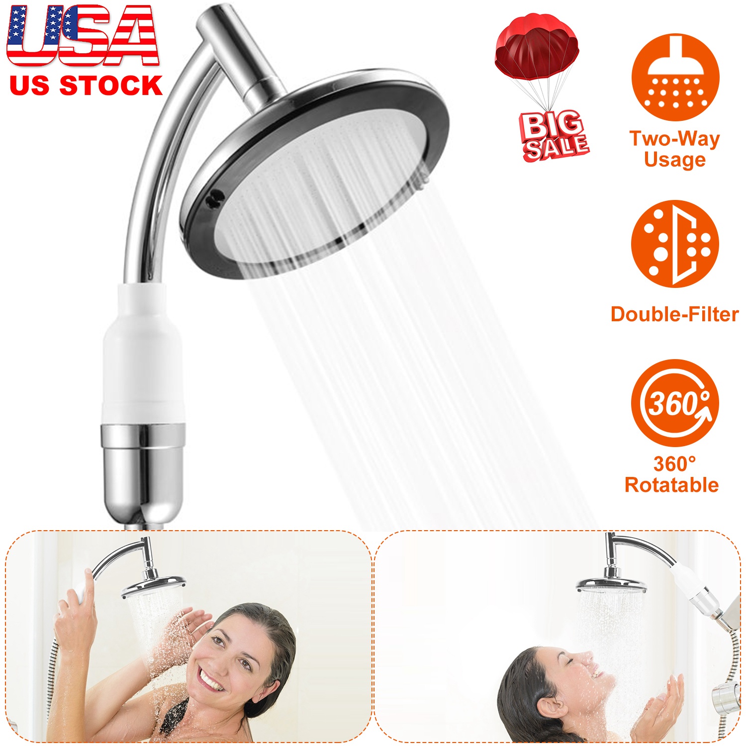 Using 5.5'' high pressure shower head, makes your shower feels like a gentle massage! Hang it over the head or grab it in hands for convenient usage. Embed with an adjustable swivel ball to adjust angle easily. With mineralization ball and ceramic cartridge to release healthful mineral element and filter impurity to ensure the water is clean.