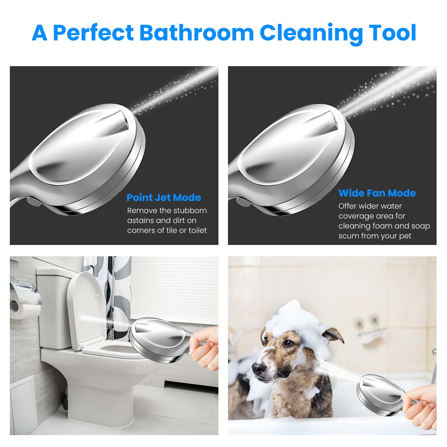 Featured with 8+2 spray modes and adopts 66pcs nozzle jets spreading on 5in head, our handheld shower head with 5ft stainless steel hose not only can satisfy diverse bathing demands for adults, kids and pets, but also can be used as a perfect cleaning tool to remove stains on dead spot in bathroom. Dense holes design provides you high pressure water flow while efficiently saving up water. Besides, built-in filter system helps remove residual chlorine, heavy metals, impurities, which is beneficial to improve cell viability and skin hydration.