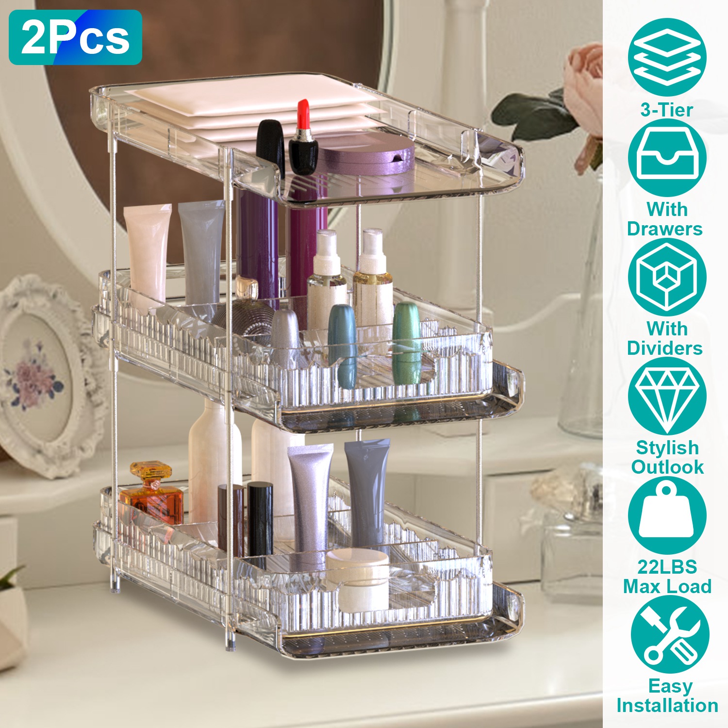 Home > 2 Packs 3 Tier Clear Bathroom Organizer with Drawers Dividers Pull-Out Pantry Organization Medicine Bins Slide-Out Storage Container Beauty Cabinet