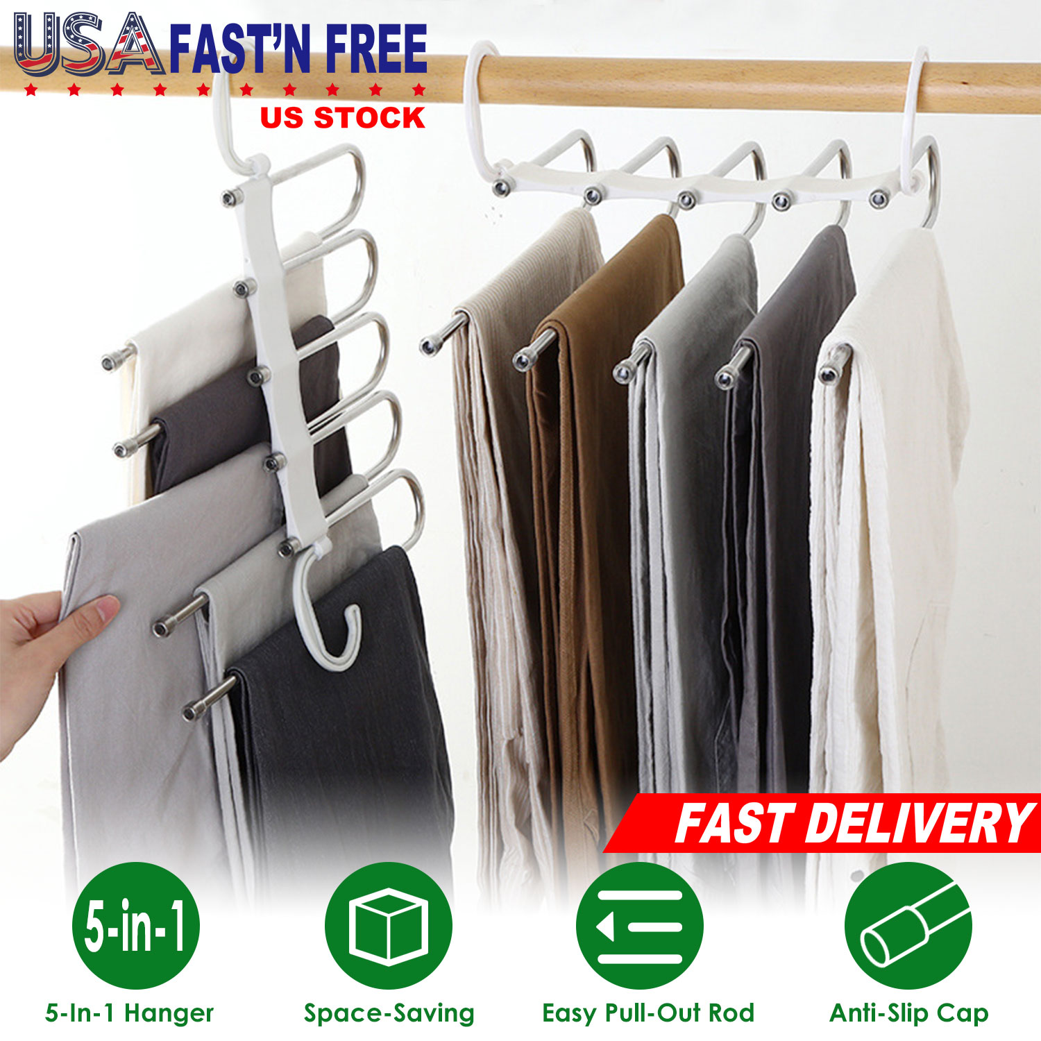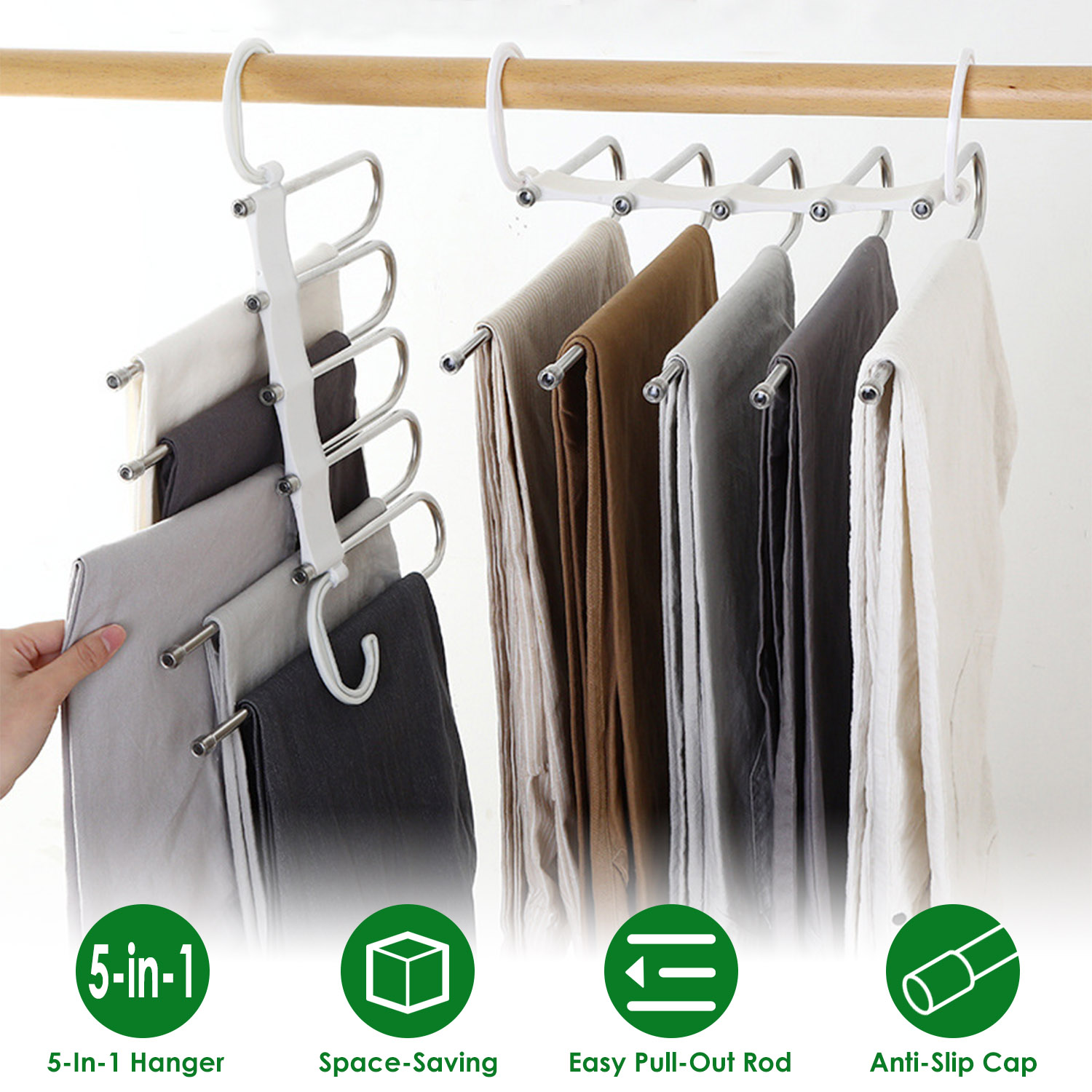 Home > Space Saving Pants Hangers 5-in-1 Stainless Steel Trouser Storage Organizer Non-Slip Clothes Rack Shelves For Pants Scarf Jeans Trousers Skirts