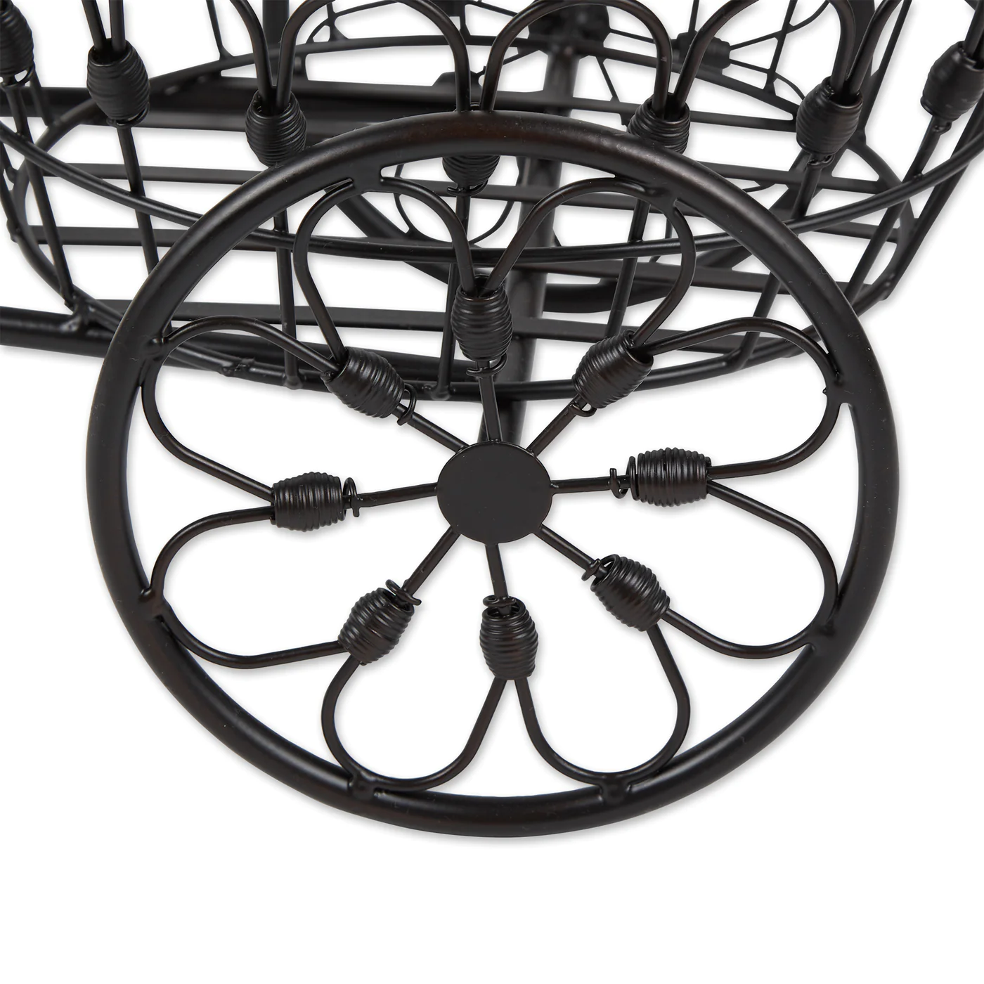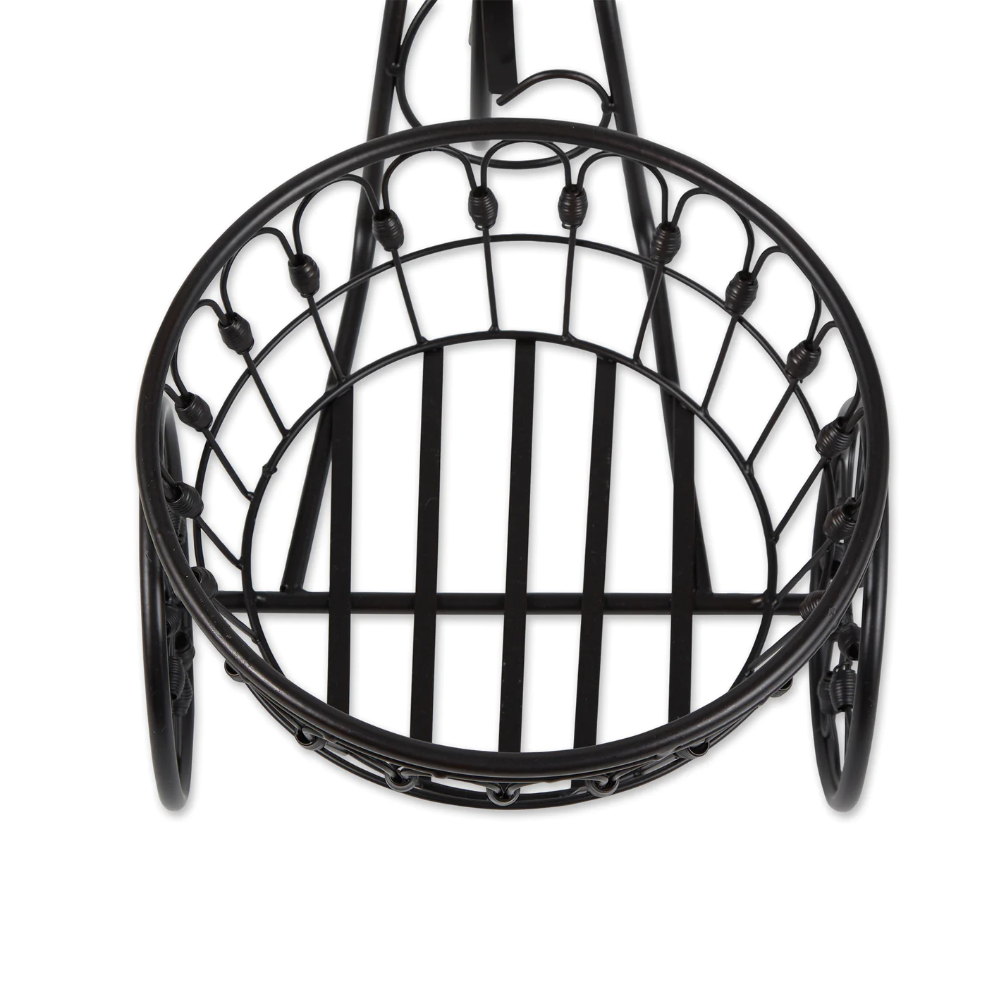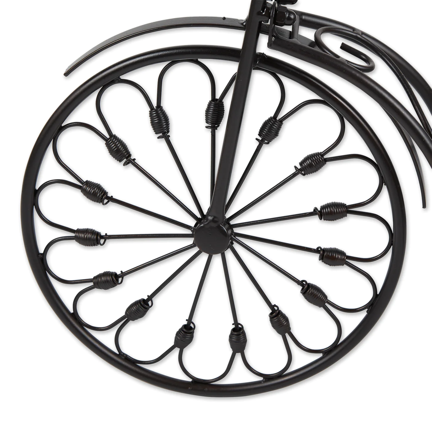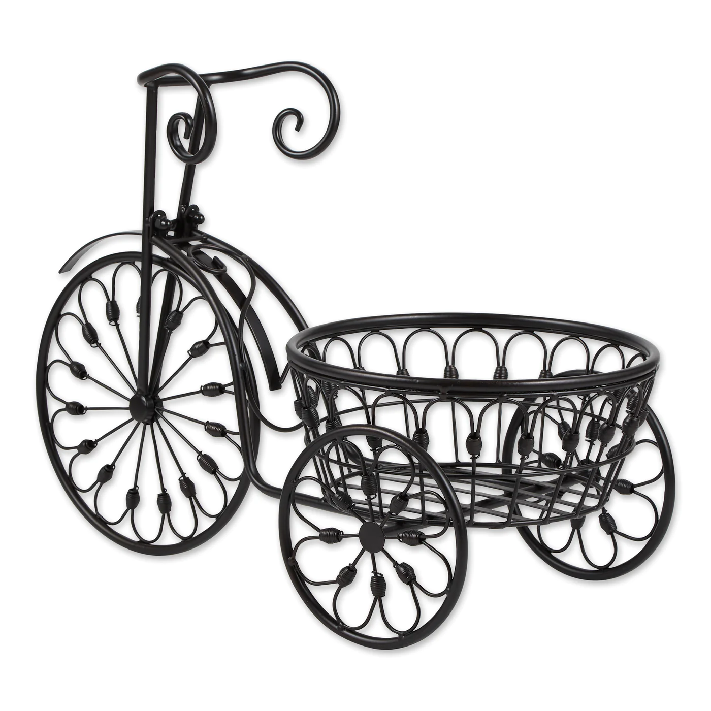 • Nostalgic styling blooms to life when you add your favorite plant to this whimsical stand! Wrought iron curlicues form the shape of an old-fashioned bicycle from bygone days.